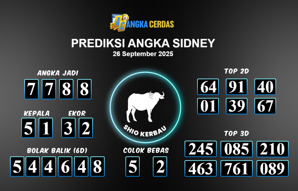 Angka Cerdas : Bocoran Prediksi Togel SIDNEY Tanggal 26 September 2025