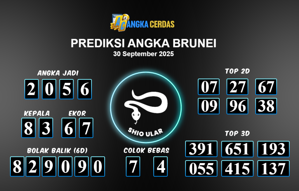 Prediksi Togel BRUNEI untuk hari ini Selasa 30 September 2025, adalah salah