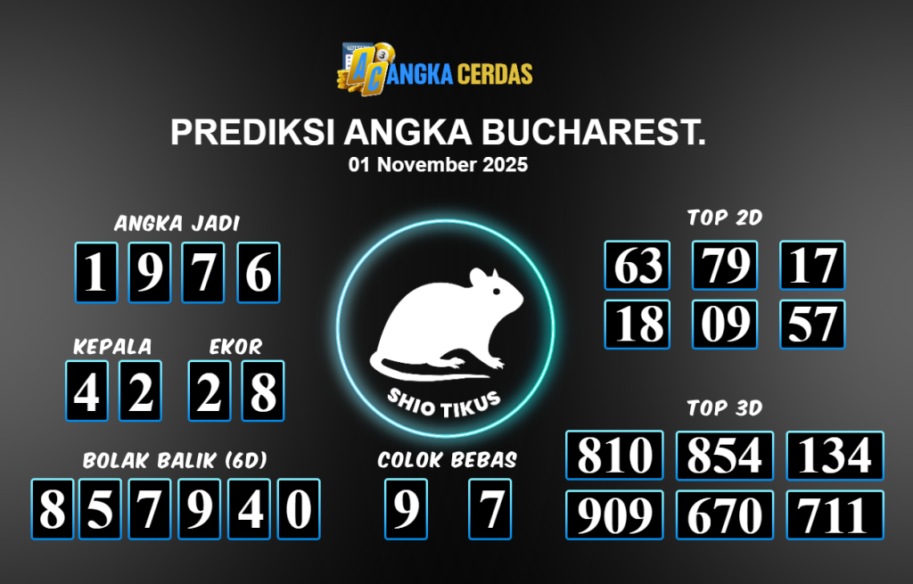 Prediksi Togel BUCHAREST untuk hari ini Sabtu 01 November 2025, adalah salah