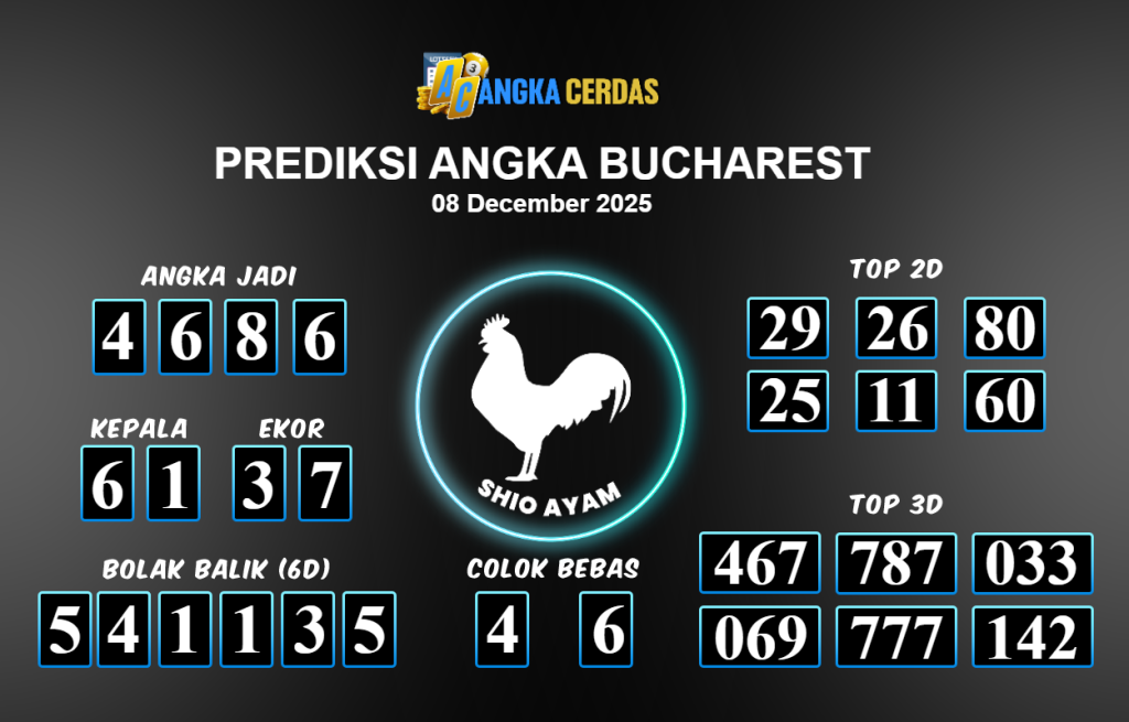 Prediksi Togel BUCHAREST untuk hari ini Senin 08 Desember November 2025, adalah salah