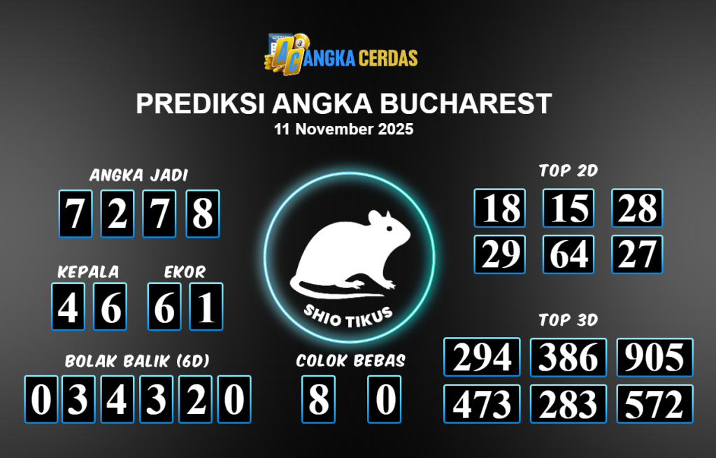 Prediksi Togel BUCHAREST untuk hari ini Selasa 11 November 2025, adalah salah