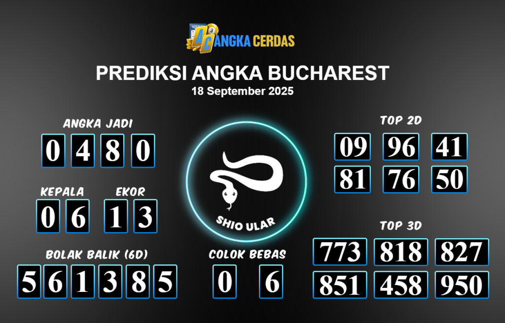 Prediksi Togel BUCHAREST untuk hari ini Kamis 18 September 2025, adalah salah