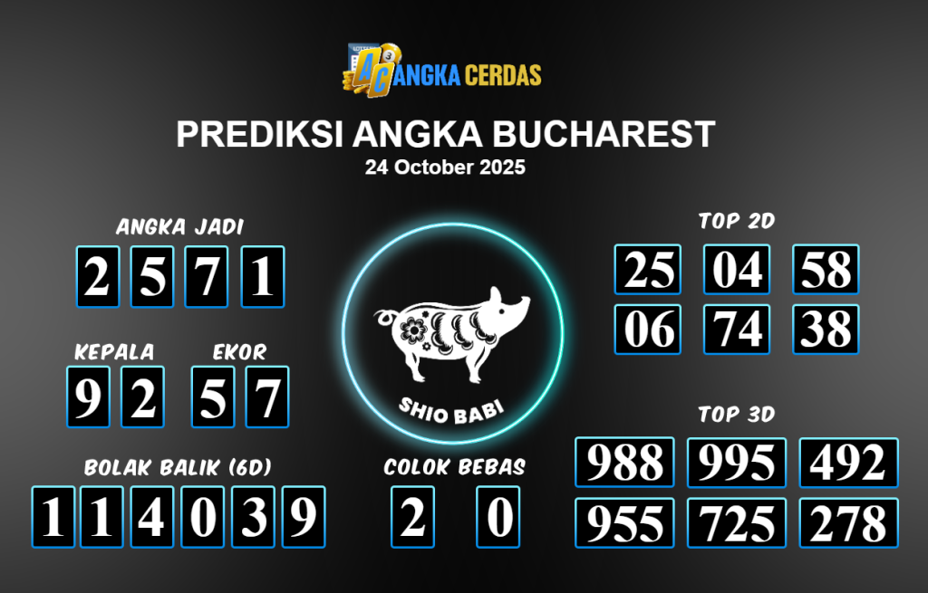 Prediksi Togel BUCHAREST untuk hari ini Jumat 24 Oktober 2025, adalah salah