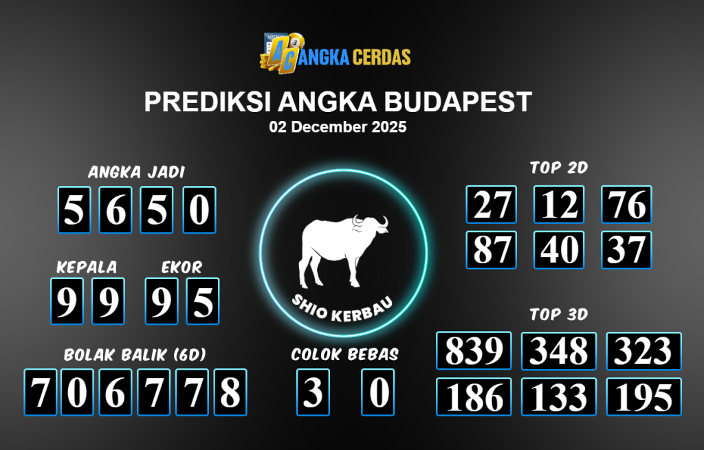 Prediksi Togel BUDAPEST untuk hari ini Selasa 02 Desember November 2025, adalah salah