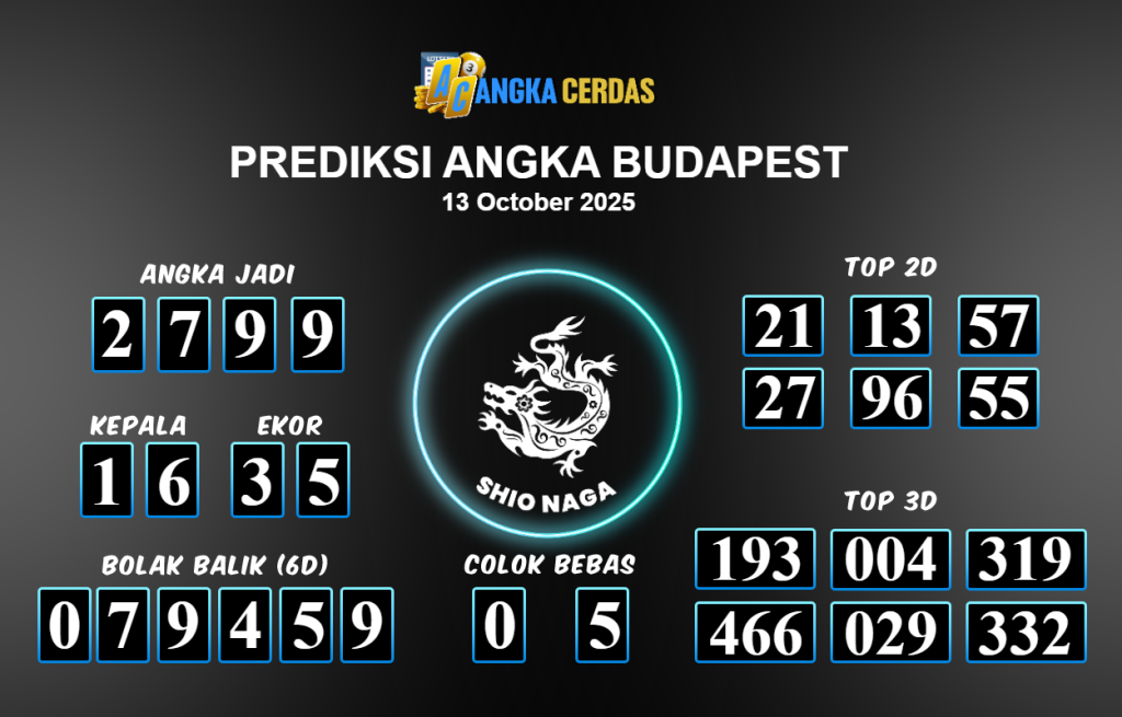 Prediksi Togel BUDAPEST untuk hari ini Senin 13 Oktober 2025, adalah salah