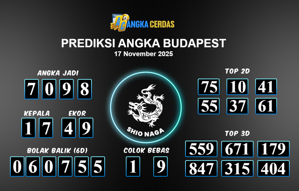 Prediksi Togel BUDAPEST untuk hari ini Senin 17 November 2025, adalah salah