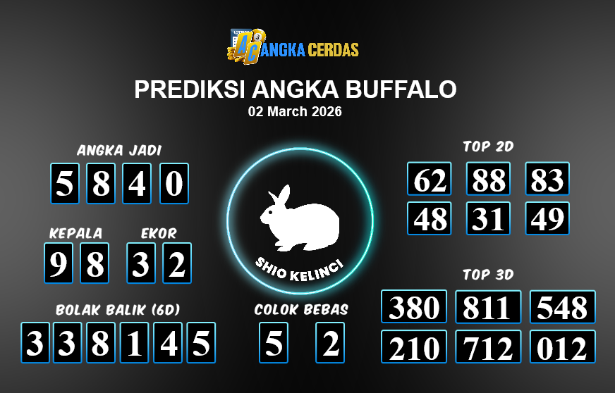 Prediksi Togel BUFFALO untuk hari ini Senin, 02 Maret 2026, adalah salah