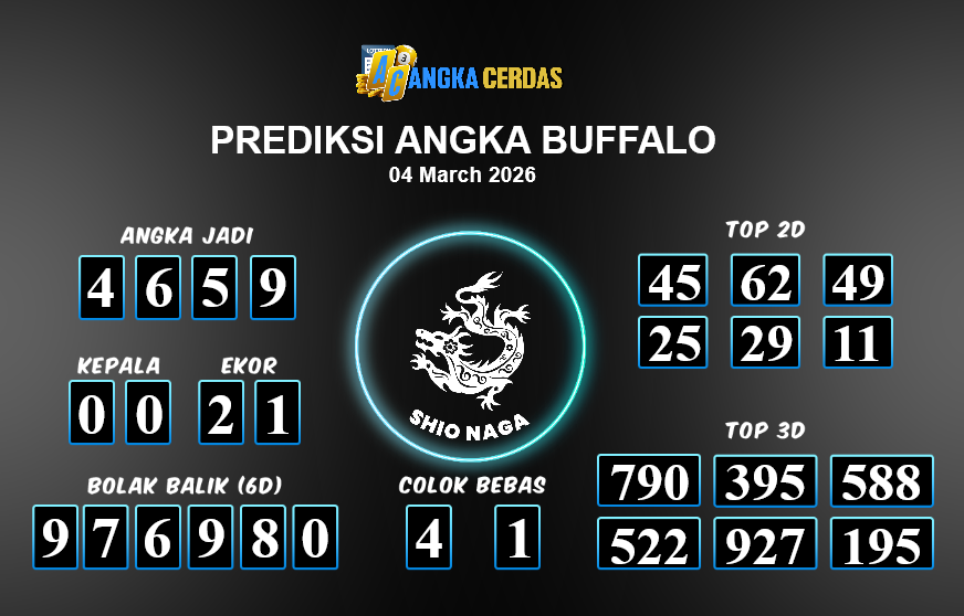 Prediksi Togel BUFFALO untuk hari ini Rabu, 04 Maret 2026, adalah salah