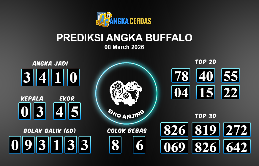 Prediksi Togel BUFFALO untuk hari ini Minggu, 08 Maret 2026, adalah salah