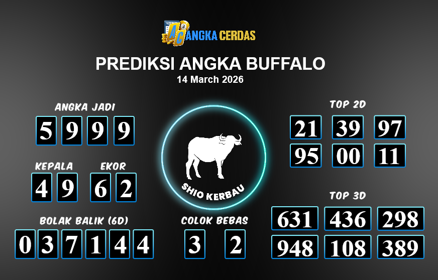Prediksi Togel BUFFALO untuk hari ini Sabtu, 14 Maret 2026, adalah salah