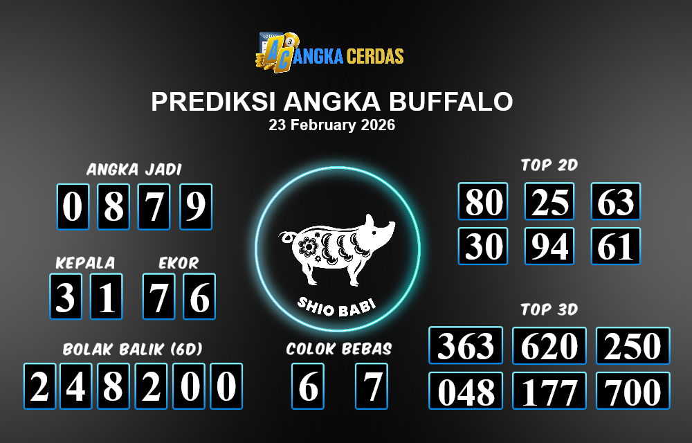 Prediksi Togel BUFFALO untuk hari ini Senin, 23 Februari 2026, adalah salah
