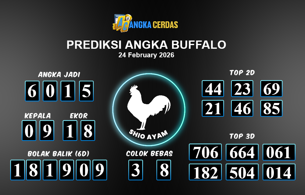 Prediksi Togel BUFFALO untuk hari ini Selasa, 24 Februari 2026, adalah salah