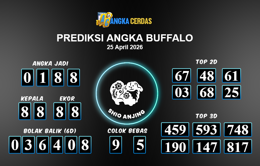 Prediksi Togel BUFFALO untuk hari ini Sabtu, 25 April 2026, adalah salahsatu jenis togel yang memiliki banyak penggemar.Ini terutama ditujukanbagi Anda yang menyukai 4d/3d/2d. Prediksi Angka Cerdas yang kamisediakan,bisa