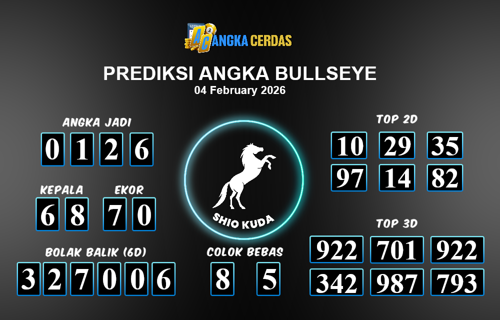 Prediksi Togel BULLSEYE untuk hari ini RABU, 04 Februari 2026, adalah salah