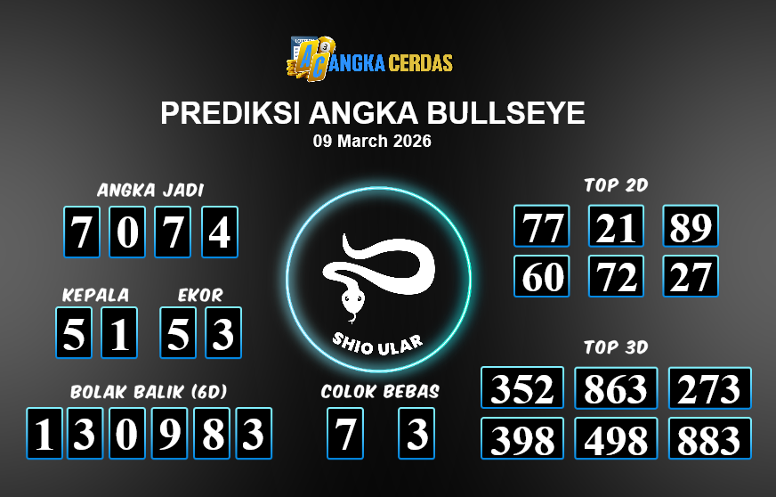 Prediksi Togel BULLSEYE untuk hari ini Senin, 09 Maret 2026, adalah salah