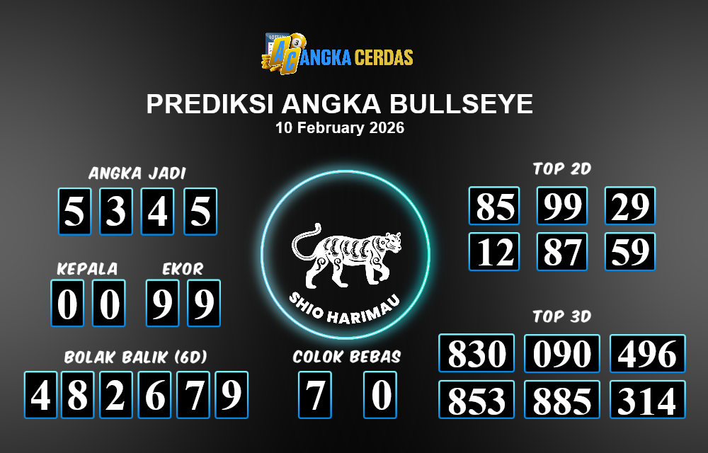 Prediksi Togel BULLSEYE untuk hari ini Selasa, 10 Februari 2026, adalah salah