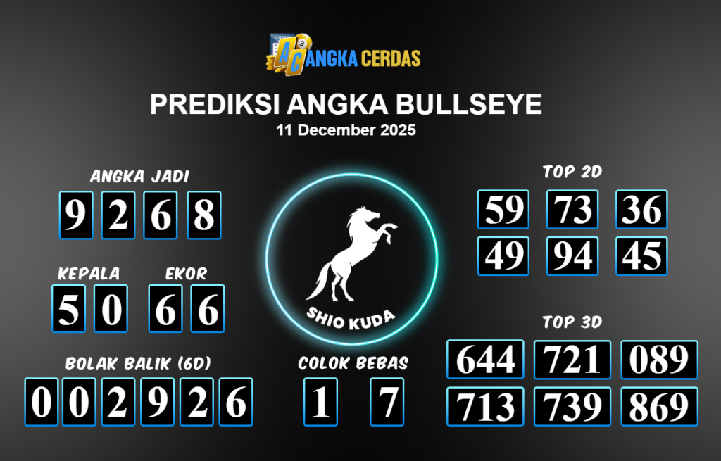 Prediksi Togel BULLSEYE untuk hari ini Kamis 11 Desember November 2025, adalah salah