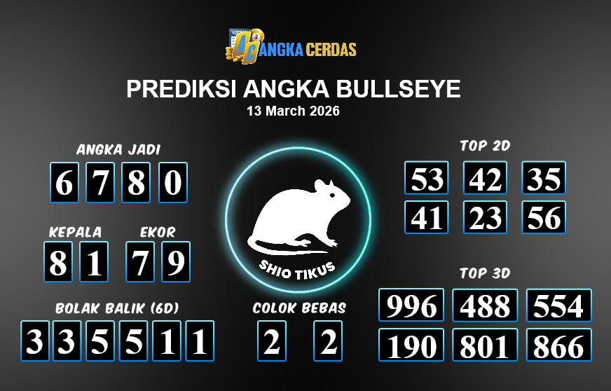 Prediksi Togel BULLSEYE untuk hari ini Jumat, 13 Maret 2026, adalah salah