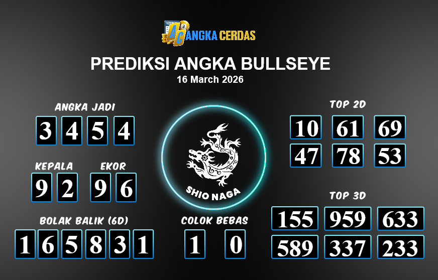 Prediksi Togel BULLSEYE untuk hari ini Minggu, 15 Maret 2026, adalah salah