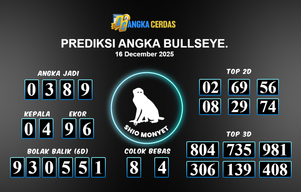 Prediksi Togel BULLSEYE untuk hari ini Selasa 16 Desember November 2025, adalah salah