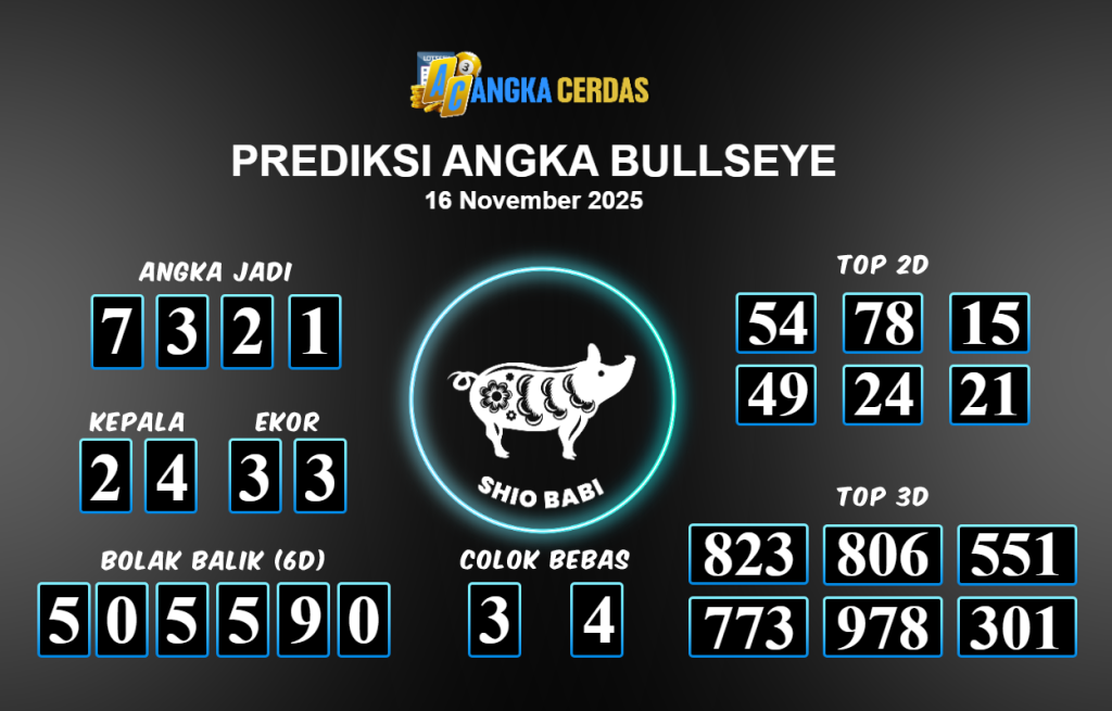 Prediksi Togel BULLSEYE untuk hari ini Minggu 16 November 2025, adalah salah
