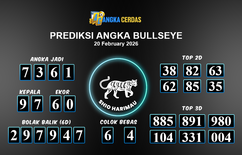 Prediksi Togel BULLSEYE untuk hari ini Jumat, 20 Februari 2026, adalah salah