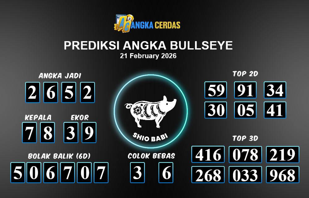 Prediksi Togel BULLSEYE untuk hari ini Sabtu,, 21 Februari 2026, adalah salah