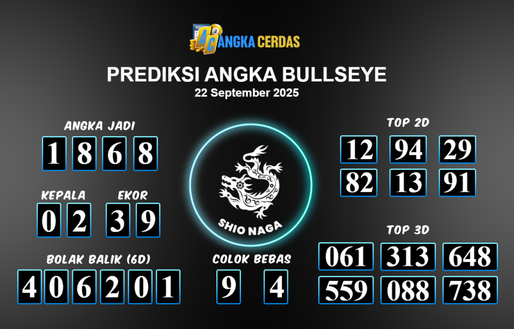 Prediksi Togel BULLSEYE untuk hari ini Senin 22 September 2025, adalah salah
