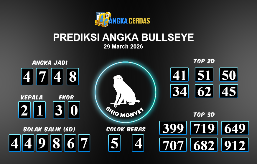 Prediksi Togel BULLSEYE hari ini Minggu, 29 Maret 2026, adalah salah
