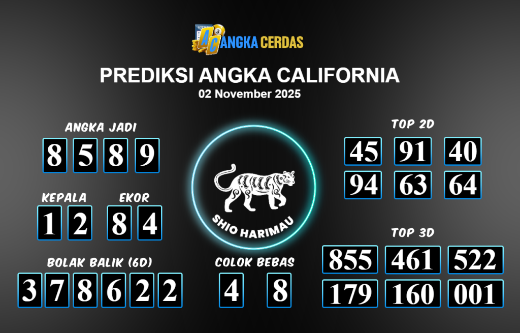 Prediksi Togel CALIFORNIA untuk hari ini Minggu 02 November 2025, adalah salah