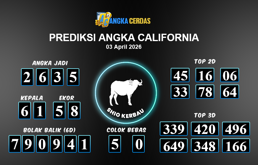 Prediksi Togel CALIFORNIA untuk hari ini Jumat, 03 April 2026, adalah salah