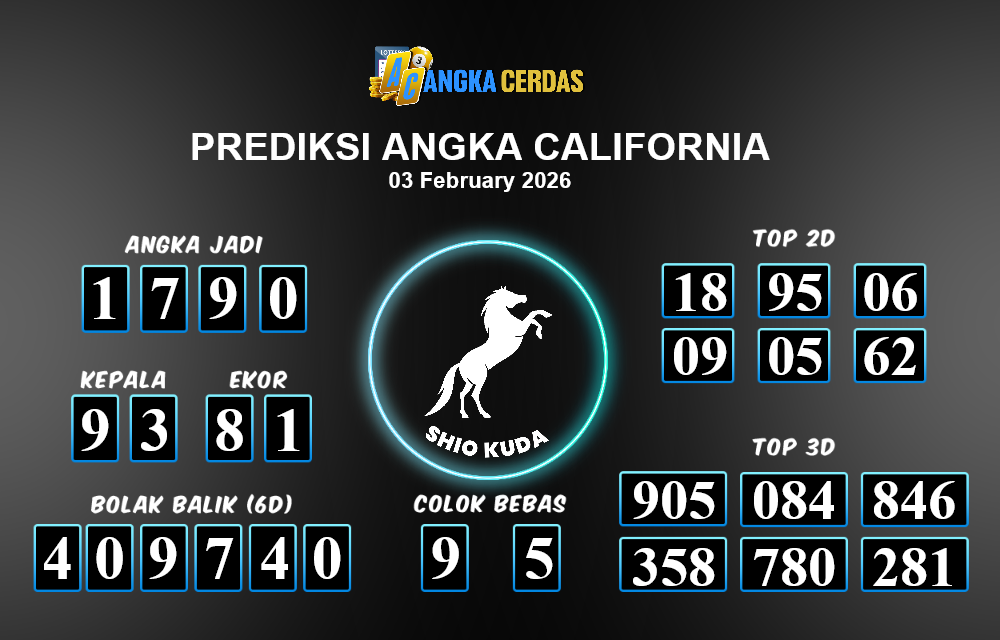 Angka Cerdas : Bocoran Prediksi Togel CALIFORNIA Tanggal 03 FEBRUARI 2026