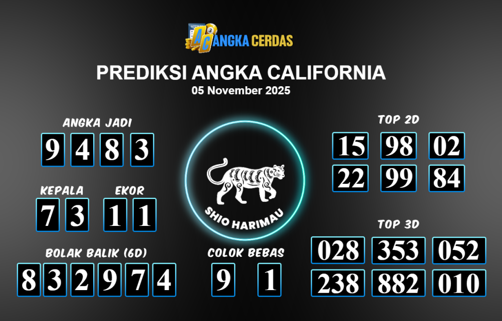 Prediksi Togel CALIFORNIA untuk hari ini Rabu 05 November 2025, adalah salah