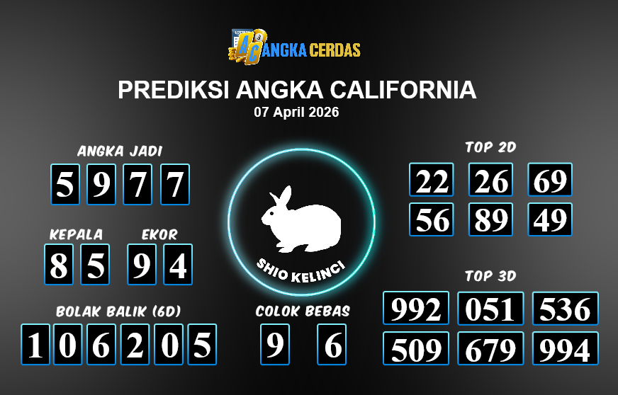 Angka Cerdas : Bocoran Prediksi Togel CALIFORNIA Tanggal 07 APRIL 2026