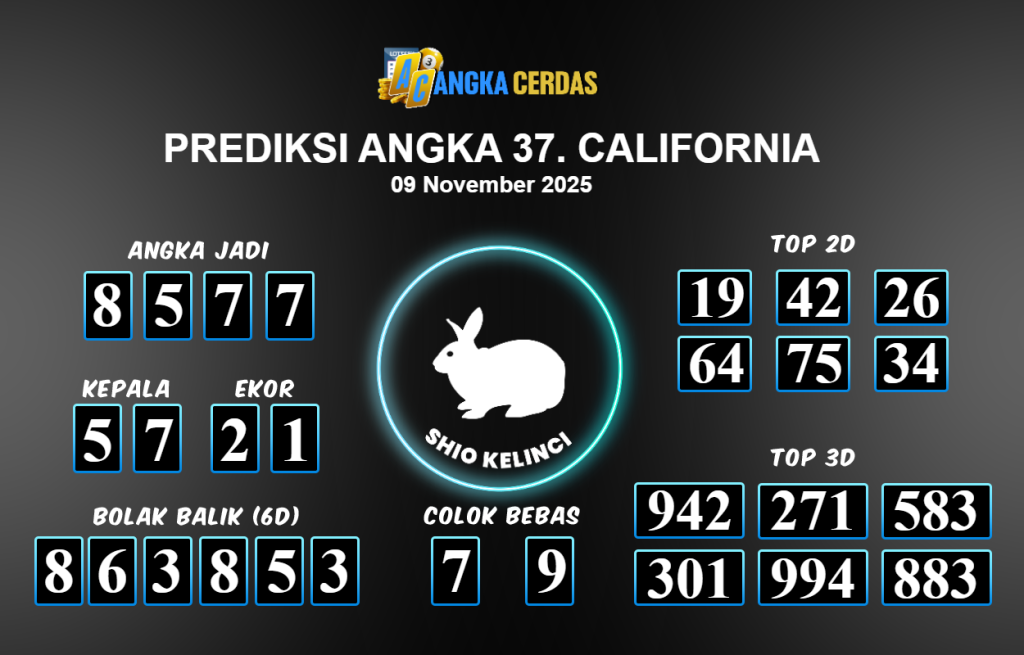 Prediksi Togel CALIFORNIA untuk hari ini Minggu 09 November 2025, adalah salah