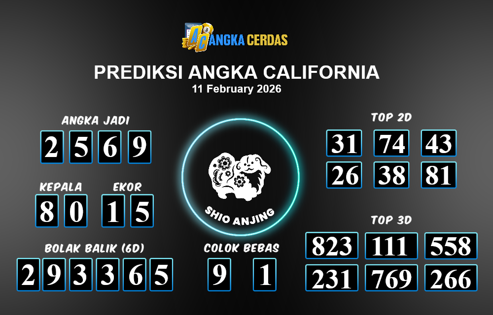 Prediksi Togel CALIFORNIA untuk hari ini Rabu, 11 Februari 2026, adalah salah