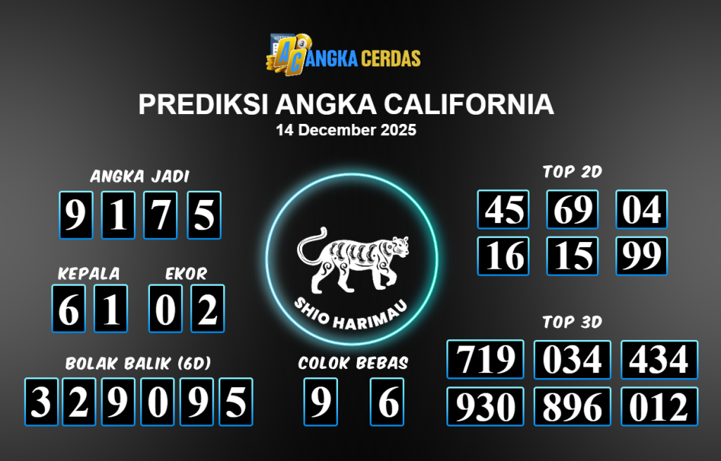 Prediksi Togel CALIFORNIA untuk hari ini Minggu 14 Desember November 2025, adalah salah