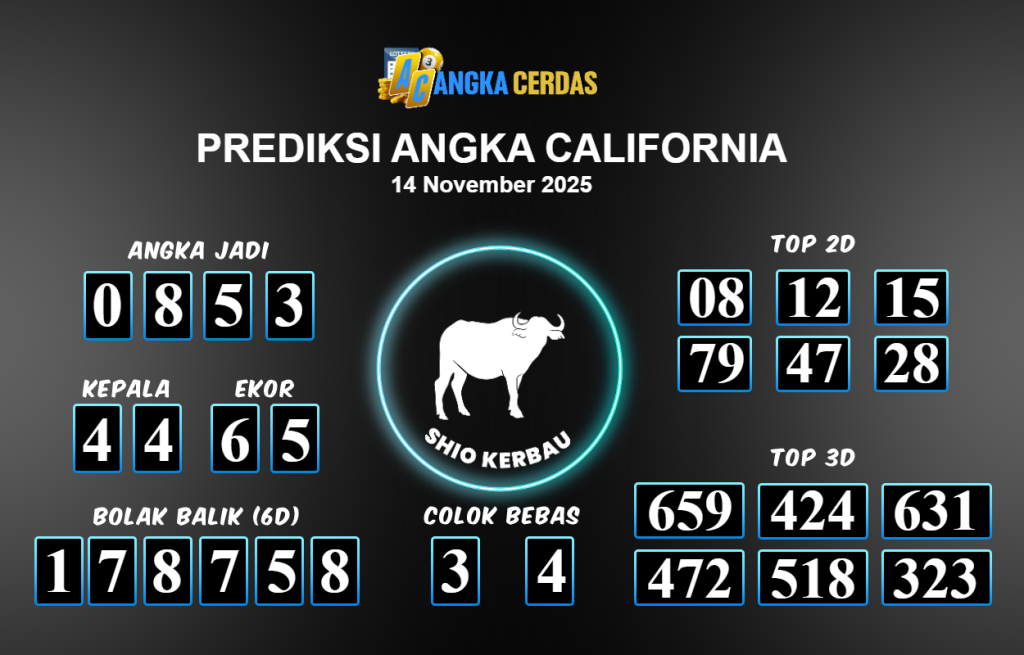 Prediksi Togel CALIFORNIA untuk hari ini Jumat 14 November 2025, adalah salah