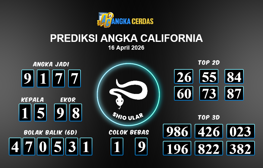 Prediksi Togel CALIFORNIA untuk hari ini Kamis, 16 April 2026, adalah salah