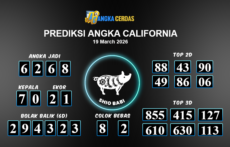 Prediksi Togel CALIFORNIA untuk hari ini Kamis, 19 Maret 2026, adalah salah