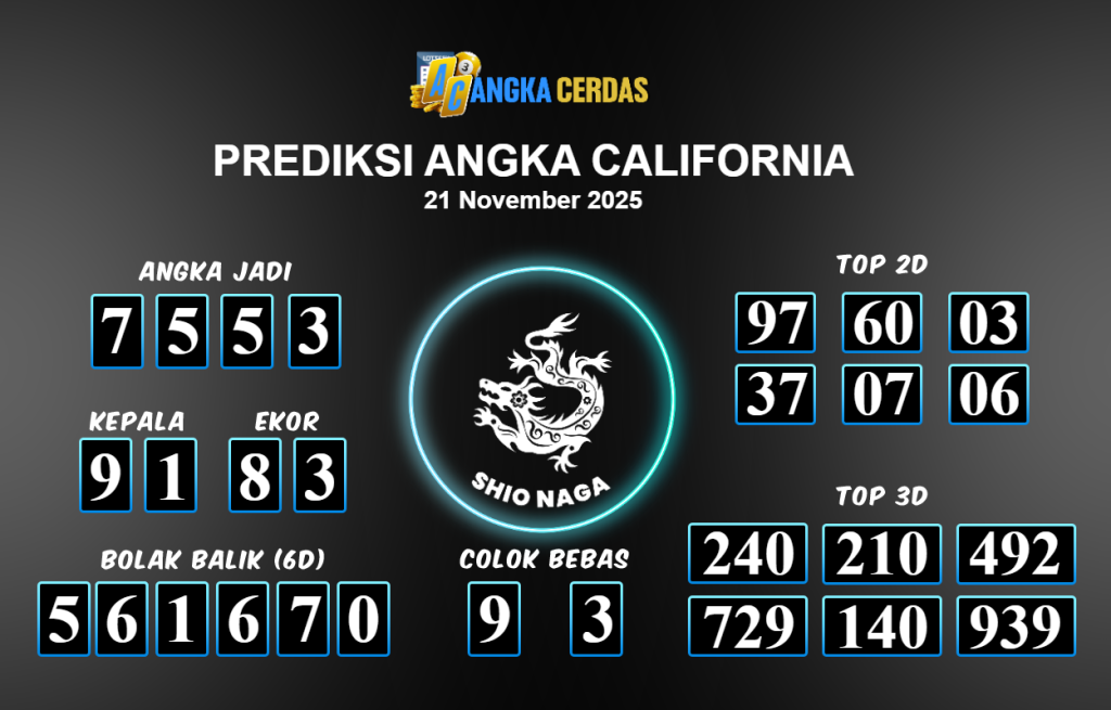 Angka Cerdas : Bocoran Prediksi Togel CALIFORNIA Tanggal 21 November 2025