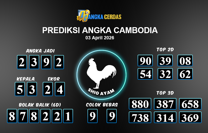 Prediksi Togel CAMBODIA untuk hari ini Jumat, 03 April 2026, adalah salah