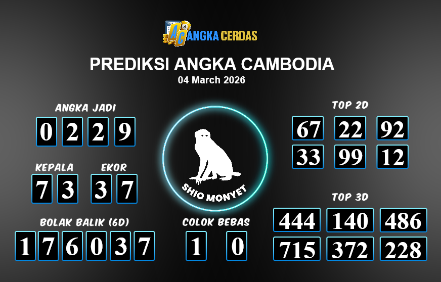Prediksi Togel CAMBODIA untuk hari ini Rabu, 04 Maret 2026, adalah salah