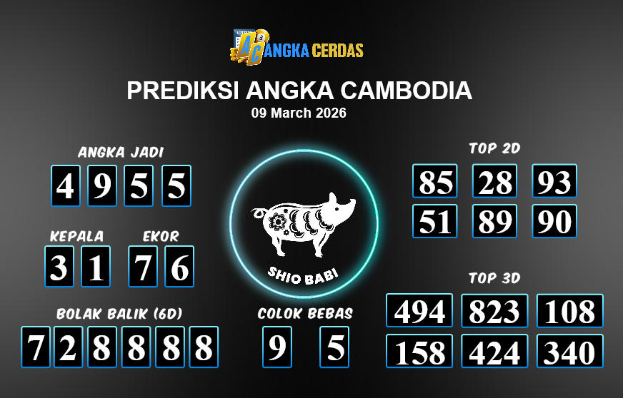 Prediksi Togel CAMBODIA untuk hari ini Senin, 09 Maret 2026, adalah salah