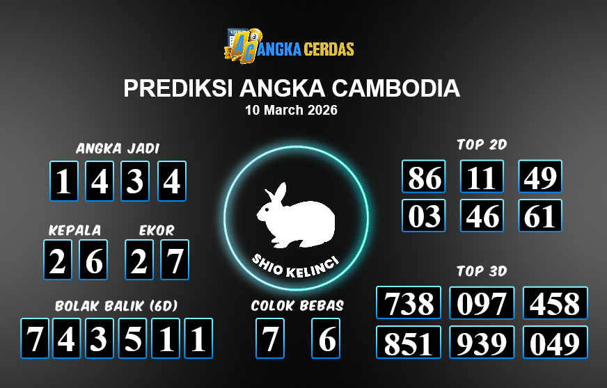 Prediksi Togel CAMBODIA untuk hari ini Selasa, 10 Maret 2026, adalah salah