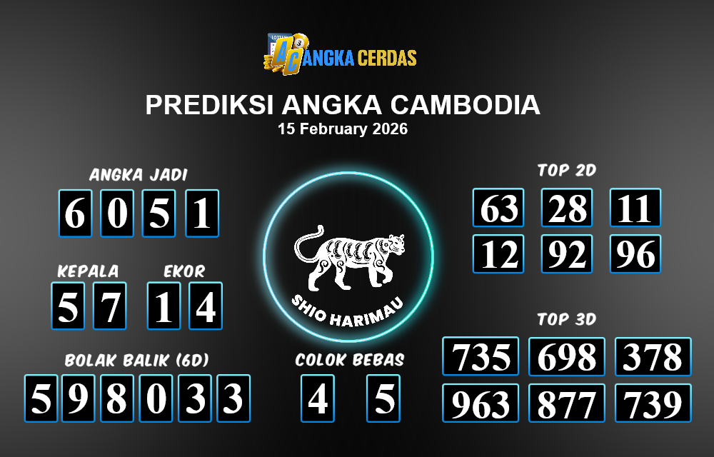 Prediksi Togel CAMBODIA untuk hari ini Minggu, 15 Februari 2026, adalah salah