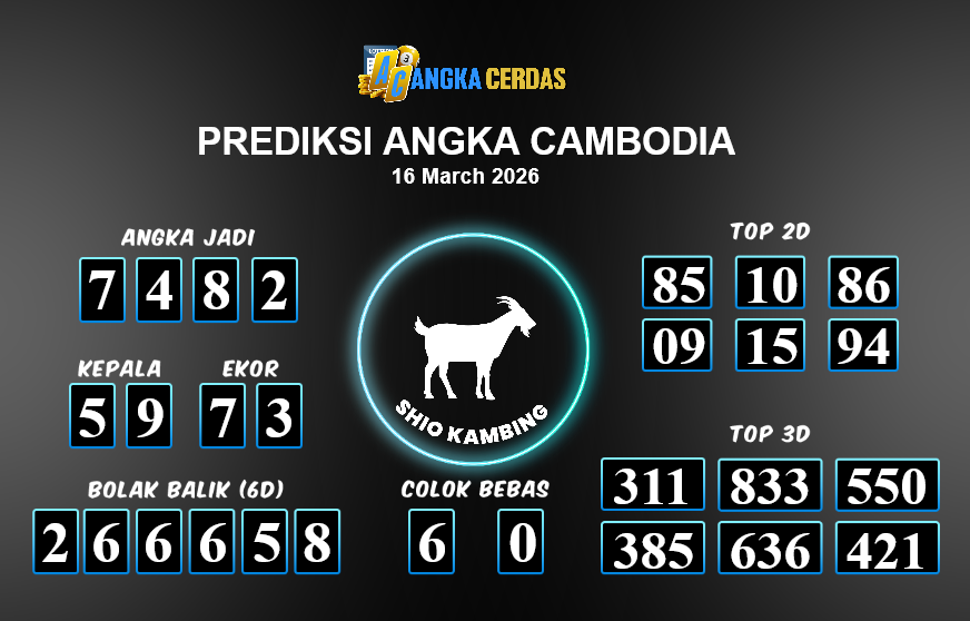 Prediksi Togel CAMBODIA untuk hari ini Minggu, 15 Maret 2026, adalah salah