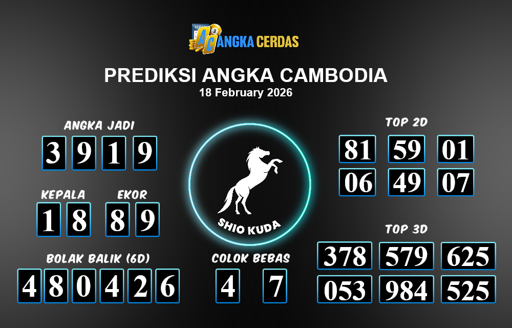 Prediksi Togel CAMBODIA untuk hari ini Rabu, 18 Februari 2026, adalah salah