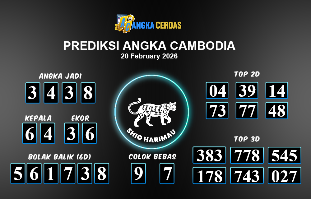 Prediksi Togel CAMBODIA untuk hari ini Jumat, 20 Februari 2026, adalah salah