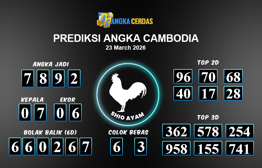 Prediksi Togel CAMBODIA untuk hari ini Senin, 23 Maret 2026, adalah salah